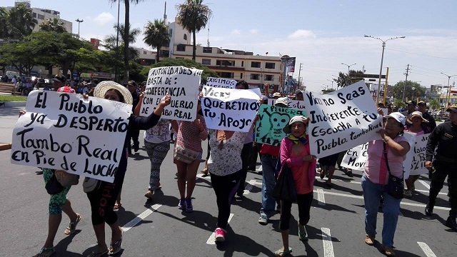 “El lunes nuestros hijos deben volver a sus clases, pero estamos aislados, el puente colapsó en Tamborreal y no hay como pasar, por eso estamos en Chimbote exigiendo a la alcaldesa Victoria Espinoza que también se preocupe de nuestro pueblo. Y no solo Tamborreal está aislado, sino también los sectores de Santa Cruz, El Arenal y Bajo Canal, somos un promedio de 3 mil 500 afectados”, protestó el dirigente de la Ronda Campesina de Tamborreal Antiguo, Gilberto Martínez Salgado.