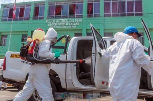También se realizó la desinfección en la sede de la Subregión Pacífico en Nuevo Chimbote, además de la División Policial de Chimbote y la Plaza de Armas de Chimbote, cubriendo un total de 15,400 metros cuadrados de áreas desinfectadas.