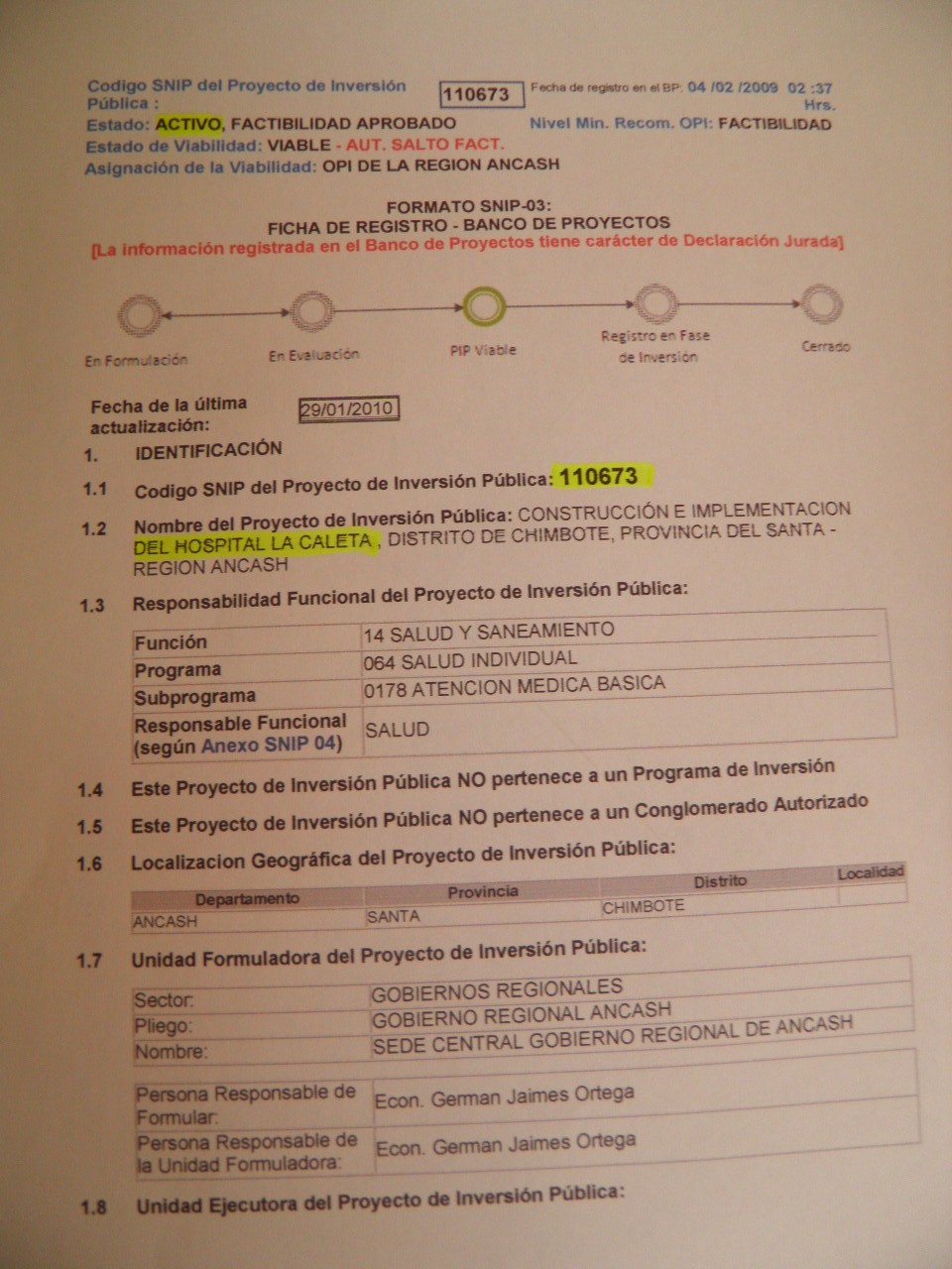 Chimbote en Línea.- Con documentos en mano el alcalde de la Municipalidad Provincial del Santa, Julio Cortez Rojas aseveró que el Gobierno Regional de Áncash (GRA) sigue apareciendo como ejecutor del proyecto para construcción del hospital La Caleta.