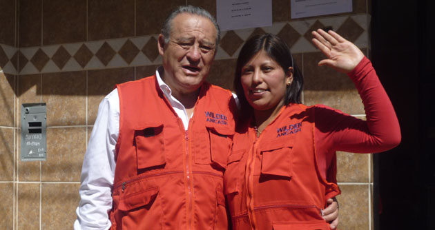 Una de las primeras organizaciones en llegar fue el Partido Aprista Peruano, cuya delegación estuvo encabezada por Wilder Calderón, todos ellos vestidos con un chaleco color rojo con el nombre de su candidato regional. Junto al candidato regional le siguió Norka Coral, candidata municipal en medio de una bulliciosa caravana.