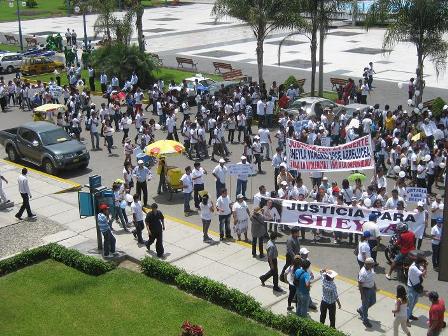 Psicología, para luego dirigirse hasta al local del Ministerio Público en el distrito donde se detuvieron para pedir a una sola voz justicia para a joven asesinada.Después se dirigieron a la plaza mayor del distrito donde la familia Arce Arrelucea, le pidió al alcalde Francisco Gasco Barreto que implemente un plan de seguridad para que un hecho tan lamentable como el asesinato de Sheyla no se vuelva a repetir.