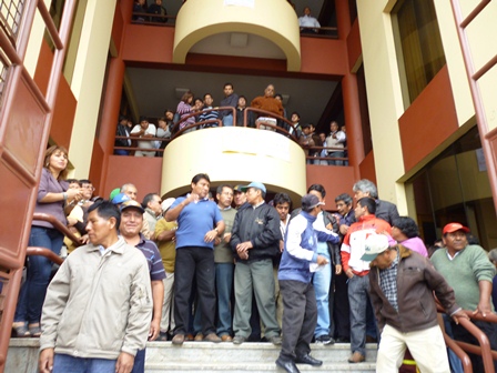 Desde las 7:30 a.m. los sindicalistas acudieron a su puesto de trabajo para marcar su entrada y posteriormente plantarse en la entrada de la comuna provincial.
