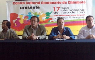 Para dar a conocer los detalles de la presentación de Chimbote en la 17° FIL, se realizó hoy una conferencia de prensa en el auditorio del Centro Cultural Centenario, que contó con la presencia de los literatos: Fernando Cueto, Italo Morales y el crítico literario, Gonzalo Pantigoso. Además de director de la Asociación Centenario, Arturo Torres Calderón, el regidor de Cultura de la Municipalidad Provincial del Santa, Roberto Briceño, y la administradora del Centro Cultural, Silvia Diestra Pastor.