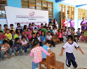 El programa de la chocolatada  consistió en un ameno y colorido show infantil con un coro de villancicos a cargo de los estudiantes de las escuelas profesionales de las carreras profesionales de Contabilidad y Administración, respectivamente; asi como la donación de pelotas impresas con el logo de Responsabilidad Social que fue el aporte voluntario de los docentes del DARES.