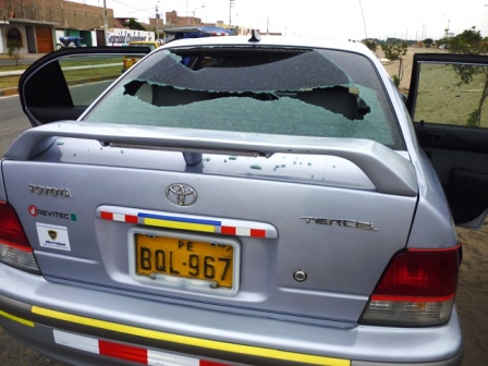 El hecho se registró al promediar las 10 de la mañana, cuando Alex Quiñones junto a 5 personas se movilizaban a bordo del auto Toyota Tercel de placa BQL-967 por la avenida central para dejar a los recolectores de firmas en Las Poncianas.