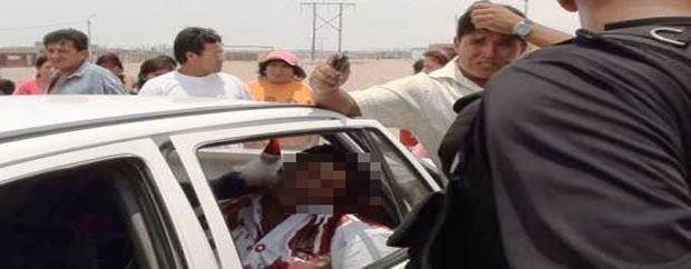 Chimbotenlinea.com (Por Cintia Cabrera).-¡Tierra de Nadie! Una banda de “marcas” asesinó a balazos a un minero de la zona de Huanchuy que llegó a Chimbote para retirar del banco 52 mil soles, producto de la venta de oro. Juan Victorino Conga Cotrina de 48 años fue acribillado esta tarde delante de su hijo mayor David Conga Cruzado de 27 años.