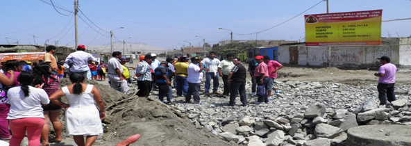Los vecinos del asentamiento humano San Miguel denunciaron que el secretario general del Sindicato de Obreros de Construcción Civil, Víctor López Padilla, retrocarga en mano y acompañado de más de medio centenar de sus afiliados sembraron el terror.(Texto y foto Lindberg Cruzado)