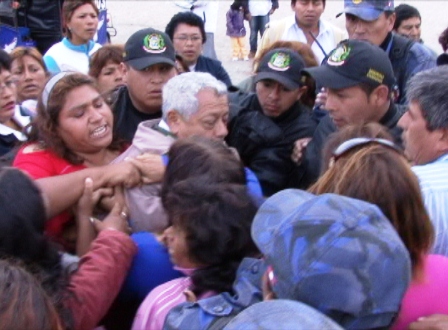 En esas circunstancias llegó el presidente regional César Álvarez y el alcalde provincial Luis Arroyo Rojas, acompañado de un grupo de sus “comandos”, quienes azuzados por la autoridad regional empezaron a insultar “traidor” al funcionario edil, lo sacaron a empujones de dicha reunión llegando a golpearlo brutalmente.