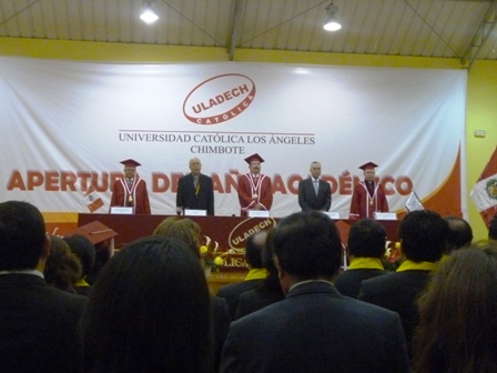 Chimbotenlinea.com (Redacción central) El rector de la ULADECH-Católica, Julio Domínguez Granda, aseguró que la universidad viene cumpliendo con los diversos stándares de calidad que ahora se le exige a los centros de estudios de nivel superior y potenciando, cada vez más, las nuevas tecnologías.Domínguez Granda se dirigió al auditorio congregado, ayer, para la ceremonia de apertura del año académico 2012; acto que estuvo presidido por el gran canciller de dicha universidad, Monseñor Ángel Francisco Simón Piorno.