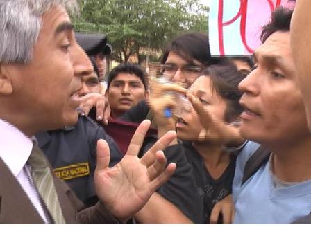 Hasta el lugar, se apersonaron el Vicerrector Académico, Víctor Castro Zavaleta y el Vicerrector Administrativo, Damián Sánchez Manayay, éste último trató de responder estas exigencias.