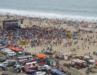 Chimbote en Línea (Nuevo Chimbote).- Una vez más, miles de neochimbotanos se congregaron ayer en el balneario Campamento  Atahualpa para refrescarse y gozar de una jornada más del Playazo Verano 2013 auspiciado por la Municipalidad Distrital de Nuevo Chimbote.
