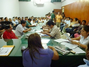 La cita se inició a las 5 de la tarde, con los integrantes del pleno edil, trabajadores municipales y vecinos sureños que abarrotaron el auditorio, sus pasillos y la parte exterior de la comuna.