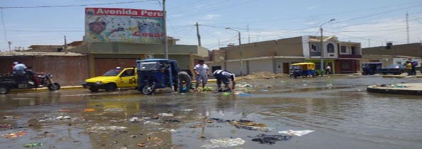 Este problema se originó hace 4 días, luego de que un canal de regadío que traslada agua de una zona agrícola, a la altura del pueblo joven Dos de Mayo, colapsara debido a los trabajos que vienen realizando los agricultores del monte de Chimbote. Asimismo por la saturación de desechos que son arrojados a este canal, poniendo en peligro la vida y salud de las moradores y choferes quienes se encuentran impedidos para realizar su trabajo. (Texto y foto Milton Palpa)