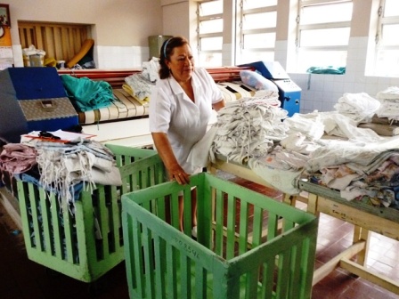 En una rápida visita por la sala de lavandería Chimbotenlinea.com comprobò que a diario se lavan de 500 a 600 kilogramos de ropa de cama, indumentaria y otros, pero sólo hay 2 máquinas lavadoras disponibles y estas tienen una capacidad de 15 a 30 kilogramos.