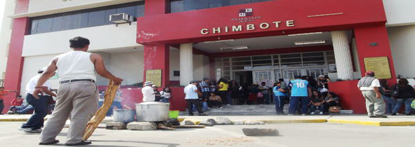A doce días de haber iniciado la huelga indefinida, los trabajadores de la Corte Superior de Justicia del Santa se reunieron esta mañana en el frontis de su sede, para realizar la segunda olla común como medida de protesta, exigiendo al Ejecutivo que cumpla con la segunda escala remunerativa para más de 400 trabajadores.(Texto y Foto: Milton Palpa)