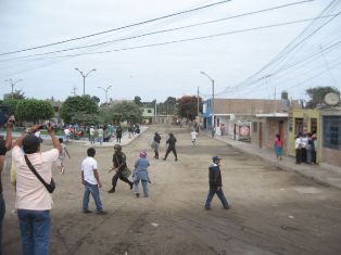 Por otro lado la Policía Nacional trató de despejar la zona, utilizando bombas lacrimógenas, y de esta manera pudo evitar los perjuicios que podían ocasionar los manifestantes. Asimismo los miembros del Frente de Organizaciones Agrarias de la Provincia del Santa (FOAPS) opusieron tenaz resistencia, evitando ser desalojados del lugar.