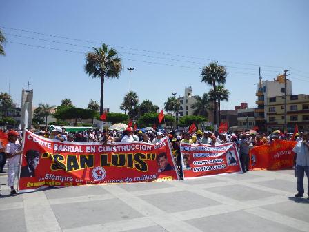 Chimbotenlinea.com (Por Leidy Cobeñas).- A fin de ratificar su decisión de llevar a cabo el paro regional indefinido a partir del 29 de febrero, para exigir al gobierno central viabilice el proyecto especial Chinecas, el Frente de Defensa y Desarrollo de la Provincia del Santa junto a los trabajadores de construcción civil realizaron una movilización por las diferentes calles de la ciudad.(Foto Leidy Cobeñas)