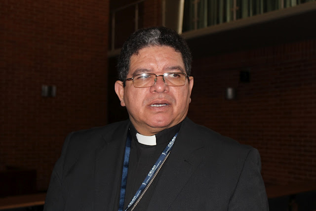 Mons. Azuaje: La palabra inculturación lo responde. Meternos de lleno en la cultura de los pueblos locales y de todos los habitantes para revestirla del evangelio, sin obligar, sin forcejar, sino dando razón de la esperanza que el evangelio trae para cada cultura. Es ser compañero de caminos de cada ser humano que allí habite. Esto implica una labor muy ardua, que no puede reflexionarse desde afuera, como es conocer a profundidad la idiosincrasia cultural de los pueblos y asumir desde las tradiciones y costumbres propias un aprendizaje para comprenderlas y dialogar con ellas desde el evangelio. Pero también, hay que profundizar la presencia pastoral en las poblaciones más frágiles y amenazadas por el desarrollo depredador, y apoyarlas en sus esfuerzos para lograr una equitativa distribución de la tierra, del agua, y de todo espacio para la vida. No se puede evangelizar sin ser primeros evangelizados desde lo natural, desde las propias experiencias religiosas de nuestros pueblos.    (Por José Antonio Varela Vidal - Zenit.org)