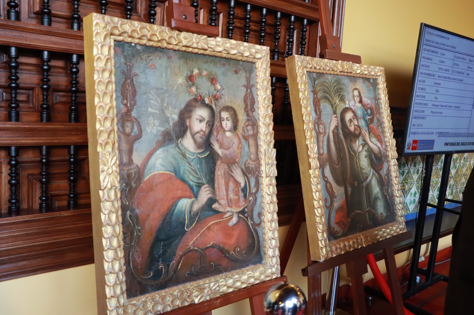 Así como, dos (02) bienes histórico-artísticos, que consisten en dos pinturas cusqueñas del siglo XVII, que originalmente conformaban el lienzo denominado “San José, San Cristóbal y el Niño Jesús”. Ambas pinturas fueron incautadas por el FBI.