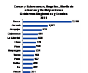 Este estudio realizado por CAD pone en evidencia que a nivel de gobiernos regionales los que recibieron mayores transferencias por canon y otras recursos en el 2011 fueron: Cusco (S/.525 millones), Ancash (S/. 399 millones) y Callao (S/.239 millones).