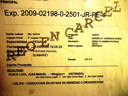 La agraviada quien es Jefa de Logística de la Corte Superior del Santa se mantiene ausente de sus funciones con la licencia respectiva; y en su estado de salud ha buscado sus antecedentes hallando que el docente de la universidad Nacional del Santa Ponce Loza ocasionó un choque automovilístico por conducir en estado de ebriedad luego de haber bebido 6 botellas de cerveza en una reunión social.