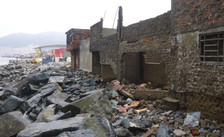 Chimbote en Línea (Locales).- Por otro lado, un grupo de moradoras de la primera cuadra del jirón Estudiantes protestaron en la parte posterior de sus viviendas, que se derrumbaron por los fuertes oleajes registrados desde la semana pasada.