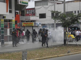 lacrimógenas que no solo corrió a los docentes, sino también afectaron a los transeúntes y comerciantes de los mercados Nuevo