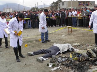 Varios testigos revelaron las características de los sicarios. El que llevaba una pistola en cada mano era un sujeto alto y de tez blanca, mientras que el otro criminal era de aproximadamente 1.60 m. trigueño. (Por: Lindberg Cruzado)