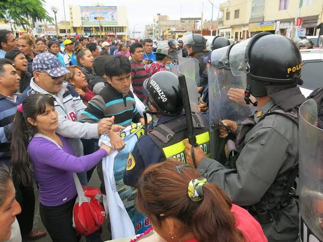 Con pancartas y gigantografías en mano, los quejosos vociferaban su demanda, sin embargo cuando trataron de acercarse al palacio edil, tuvieron un tenso enfrentamiento con el personal de serenazgo y policía nacional, quienes impidieron su ingreso.