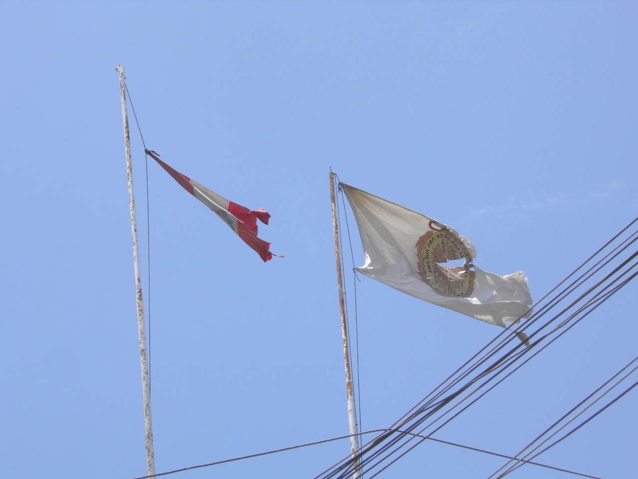 Chimbote en Línea.- Vecinos de la tercera cuadra del jirón José Balta dieron a conocer esta mañana que la Bandera Nacional y de la Fiscalía de la Nación se encuentran flameando sucias y rotas en el techo del edificio de la Fiscalía Especializada en Delitos de Corrupción de Funcionarios del Santa.