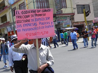 Unos 500 trabajadores de Sedachimbote acataron hoy un paro de 24 horas para rechazar la privatización de las empresas del agua que pretendería llevar adelante el gobierno del presidente de la República, Ollanta Humala Tasso, a través del proyecto de ley Nº 1293.