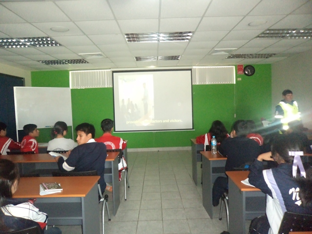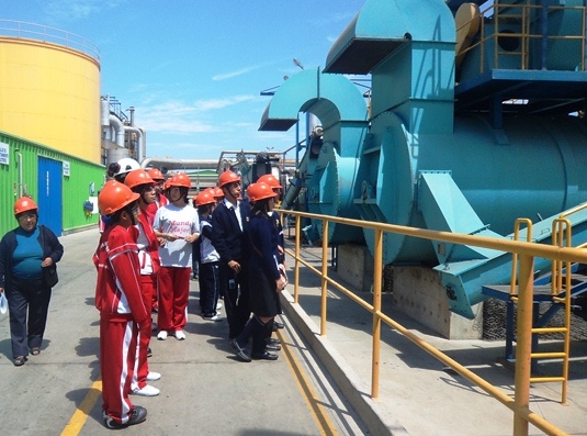 En la planta pesquerala delegación de 30 personas fue recibida por el administrador, Edwin Lazaro, y el ingeniero Walter Torres, quienes luego de una previa charla de seguridad los condujeron hasta los diferentes ambientes de esta pesquera, una de las más grandes y modernas del Perú.