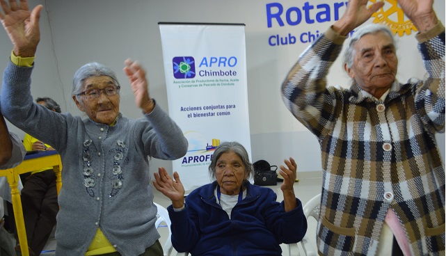Chimbote en Línea. - Más de 200 adultos mayores de Chimbote se beneficiaron con diversas actividades gratuitas en el marco de la celebración del Día Internacional del Adulto Mayor, que esta vez contó con el apoyo solidario de la Base Naval, el Rotary Club y Aprochimbote.