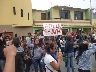 Con carteles y lanzando arengas reclamaron la no reelección del rector José María Huamán Ruiz, por haber cometido presuntamente hechos de corrupción en su gestión. Pidieron que se vaya de la universidad.