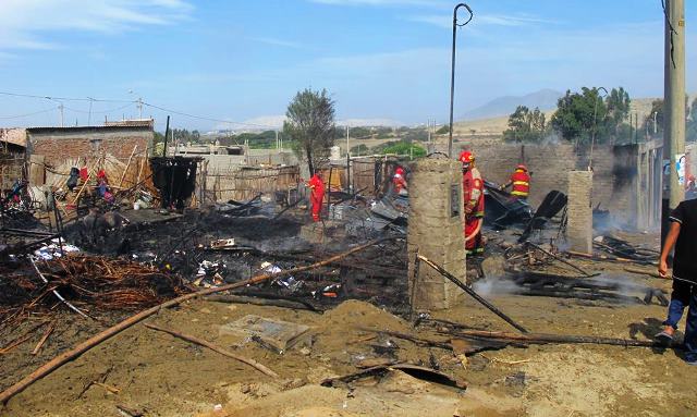 El triste hecho ocurrió cerca a las 9 de la mañana en la Mz. “A”, afectando los lotes 32, 33, 34, 35, 36 y 37 del mencionado asentamiento humano, hasta donde llegaron dos unidades del cuerpo de bomberos de Chimbote.