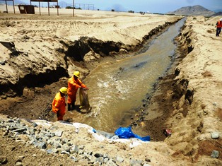 El avance desmedido de las filtraciones producto del riego indiscriminado de los posesionarios informales del Proyecto Especial Chinecas ha provocado la ruptura de una tramo de la Carretera Panamericana Norte (CPN), a pocos metros del Peaje de Vesique, para desembocar el agua filtrada, a un costado de la vía.