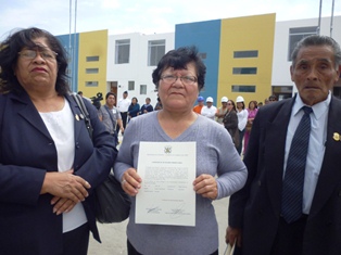 La señora Cecilia Aparcana Cambia fue quien recibió la llave de su domicilio en nombre de su esposo, el técnico de primera Guillermo Maceta Pérez, quien murió en 1991 en el