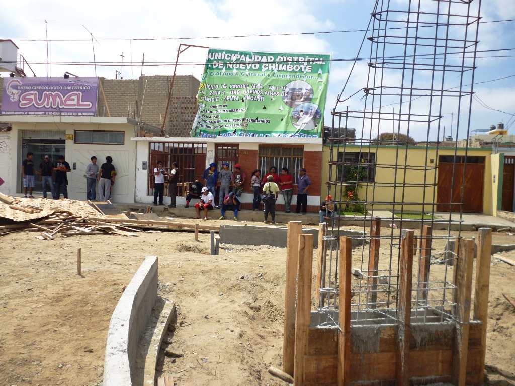 El secretario general de la urbanización Cáceres Aramayo, José Quevedo Zamora confirmó la presencia de cuatro “chalecos” en la construcción del parque central de dicho sector, obra financiada por la municipalidad distrital de Nuevo Chimbote. Uno de ellos es conocido como “Mandarina” y habrían amenazado al representante de los obreros para que no reclamen sus pagos atrasados. La obra está a cargo del Consorcio Rocío.