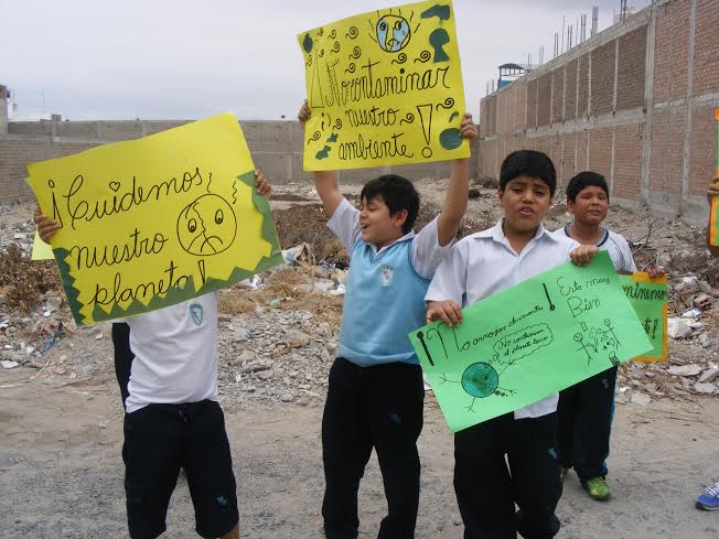 Chimbote en Línea.- Con una movilización llena de colores, cerca de 200 niños de la institución educativa particular “Mundo de Niños”, protestaron en el frontis de su plantel exigiendo al municipio de Nuevo Chimbote, recoja los desperdicios y la basura que se ha acumulado al costado de su plantel.