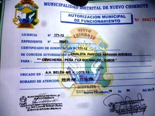 En la primera clausura temporal se sustentó que carecía de licencia de funcionamiento, lo que fue desmentido por uno de los trabajadores, Luis Huamanchumo Navera, quien mostró la licencia de funcionamiento para esta cevichería ubicada en el asentamiento humano “Belén”, manzana K lote 12 de propiedad de Abraham Zavaleta Paredes, cuya renovación se concedió el 16 de abril de este año.