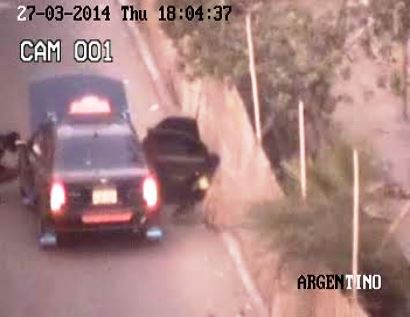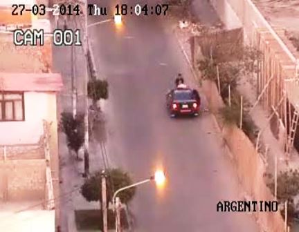 Todos sus movimientos fueron captados por una cámara de Seguridad Ciudadana, aquí se observa como dos sujetos descienden de un auto de la línea Las Palmeras de placa A3W-386 y tras abrir el capot delantero encienden sus luces de peligro simulando que el vehículo se había malogrado, en cuestión de segundos sacan dos rollos de alambrón y los guardan en el auto.