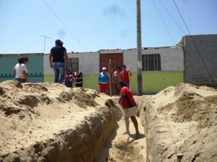 En tiempos de guerra. Más de 400 familias de los pueblos de Víctor Raúl Haya de la Torre y Luis Alberto Sánchez han excavado zanjas alrededor de sus terrenos para evitar ser desalojados por la comunidad siderúrgica.