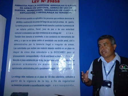 Sin embargo, estas cifras estadísticas se contraponen en un giro de 360° a la finalidad de Ley de Amnistía N° 29858 que consiste en regularizar o devolver aquellas armas de fuego que se encuentren al margen de la ley que fue emitida el pasado 3 de mayo. A la fecha tiene sólo 3 personas que han puesto las armas a disposición de la autoridad civil, se trata de dos armas hechizas y un revolver calibre 22; que fue devuelta a pesar de contar con la respectiva licencia.