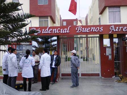 El representante de la Segunda Fiscalía Penal Corporativa de Nuevo Chimbote, Alexander Nicolai Moreno Valverde, en compañía de los peritos de Criminalística, el médico legista de turno, Ronald Gonzales Caballero y efectivos de la comisaría Buenos Aires llegaron hasta el dormitorio N° 318 del condominio donde fue hallada la víctima.