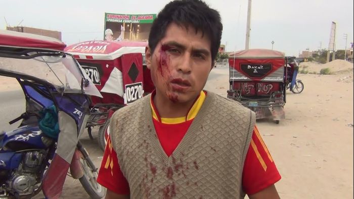 El choque suscitó hoy al mediodía en la Avenida Agraria con dirección al asentamiento humano Bellavista. El papá del pequeño que manejaba la mototaxi de placa No. B9-4599, Fredy Remigio Vega (26) resultó con un corte en la frente y refirió que fue el conductor de la otra mototaxi quien tuvo la culpa por eso huyó de la escena.