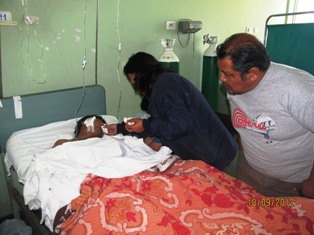 Esta mañana el joven estuvo acompañado de sus padres. Desde su cama y postrado exigió justicia