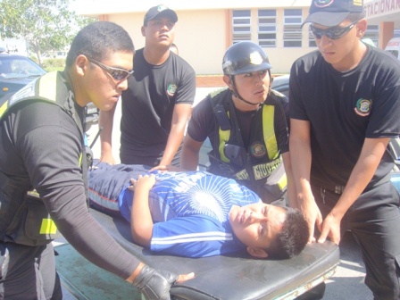 El escolar Cesar Antonio Romero Chinchay que cursa el sexto grado de primaria impactó fuertemente en el parabrisas y resultó con un corte en la cabeza y golpes en las piernas.