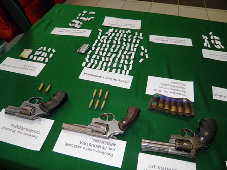 Durante su intervención se les incautó tres revólveres, municiones, droga y pasamontañas.