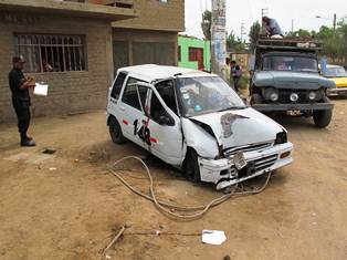 La persecución llegó hasta el jirón Juan Velasco del pueblo joven El Porvenir, donde el taxista chocó su vehículo tico contra un poste de alumbrado público. Allí sus verdugos le dispararon en la cabeza.