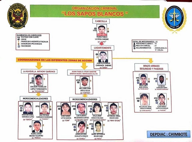 En la estructura de esta organización criminal los delincuentes Teobaldo López Yerbasanta “Pechocho” y Williams Gino Ortiz Solís “Chipico” eran sus lugartenientes. Ellos se encargaban de supervisar el reparto de la droga en los diversos centros educativos, parques y calles de Casma. (Redacción Central)